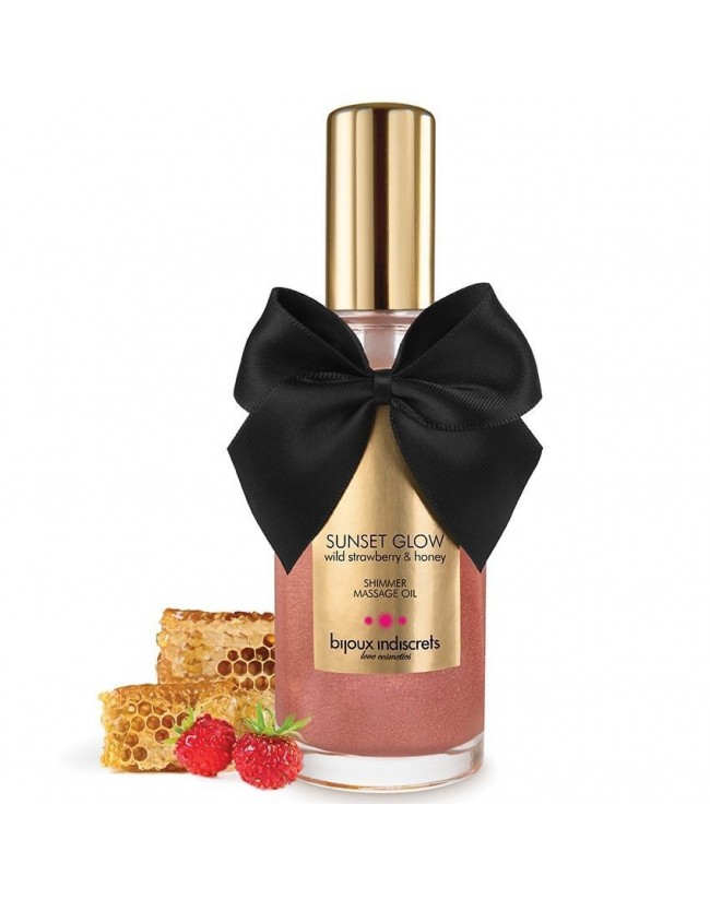 La sensualidad de la primavera concentrada en este aceite de masaje con partículas brillantes al aroma de la fresa que despierta el deseo.|Contenido: Aceite de masaje con partículas brillantes y aroma a fresa del bosque (100 ml).Consigue una piel luminosa y tentadora con un masaje sensual bañado de brillo dorado al aroma de la fresa del bosque con solo unas gotas de aceite. Comienza con movimientos circulares por todo el cuerpo y finaliza con caricias sensuales.Bijoux es simbolo de placer , erotismo y sensualidad, fabrican productos clave para el mejor climax en tus momentos intimos.La imaginación está presente en todos los aspectos de la vida, pero cobra especial relevancia en los momentos de intimidad. En Bijoux Indiscrets, sabemos lo importante que son las fantasías y el juego en las relaciones.Por eso, cada uno de nuestros productos esconde una idea, una historia y un secreto que los dota de personalidad, haciéndolos únicos.Bienvenidos al mundo secreto de Bijoux Indiscrets.|El origen del Nombre Bijoux Indiscrets!“Les Bijoux Indiscrets” es la novela erótica escrita por Denis Diderot, en el s.XVIII, en la que sus personajes viven en un mundo onírico repleto de erotismo y fantasía. A esa otra realidad, acceden gracias a un anillo mágico. Y es, precisamente, ese “anillo mágico” el que preside nuestro nombre, y esperamos nos guie, para poder conducir también a todos nuestros clientes hasta ese otro mundo lleno de placeres y sensuales aventuras.