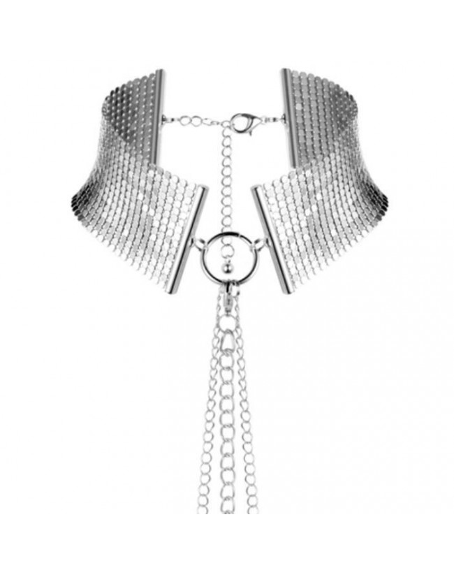 El resplandor de este metal atrapa su mirada y libera tus fantasías. Luce Désir Metállique como un complemento más en cualquier ocasión, y llévalo siempre que desees practicar sugerentes juegos de bondage en la intimidad.Contenido: accesorio de gargantilla de malla metálica y cinturón de cadena ajustable|Doble uso. Elegante collar para cualquier ocasión y un complemento para tus juegos bondage.|¡100% Ajustables! Las cadenas del collar son ajustables.|¡Conjunto de escándalo! Combina tu collar con las esposas Désir Métallique. Combínalo con un look de noche, lencería, o, simplemente, con tu piel.¡Juega sin problemas! No contiene níquel por lo que no causa reacciones alérgicas.¿Jugamos? El aspecto elegante de nuestros complementos engañan, conviertelos en los instrumentos que te abren las puerta al mundo del soft bondage.