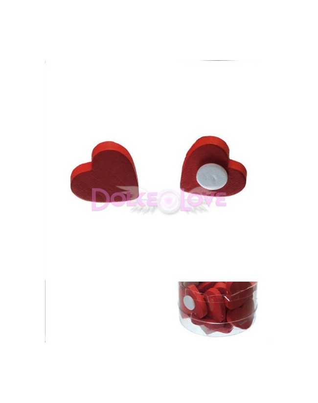 Corazón de Madera en color rojo, con Adhesivo. Para decorar cualquier producto o cesta con un bonito corazón de madera rojo. 12 unidades.