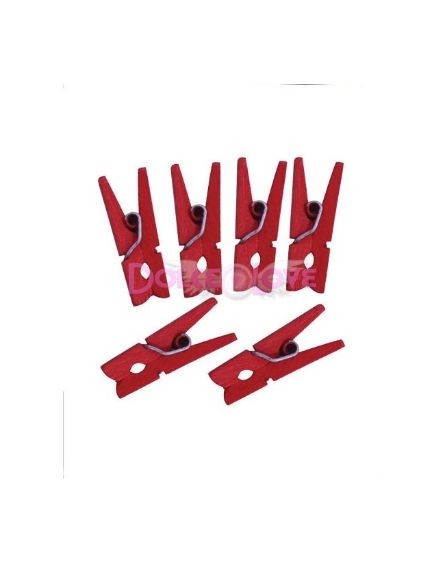 Pinzas minis rojas. Un packs de 24 pinzas mini de madera en color rojo. Son Ideales para sujetar con la pinza un sobre o tarjeta de regalo muy especial.