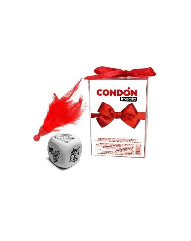 Una caja regalo compuesta por un dado un pequeño plumero para jugar y un preservativo, ideal para despedidas, amigo invisible, o para regalar en cumpleaños.