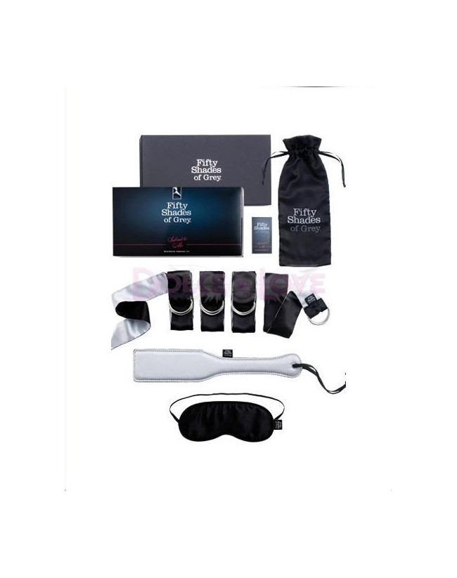 Date el placer de experimentar por primera vez un poco de bondage con este kit sensual para principiantes. Desliza el suave antifaz de satén alrededor de la cabeza de tu pareja para agudizar los sentidos, ata sus muñecas con las suaves correas de satén y golpea suavemente su piel con la paleta... El Lote incluye: