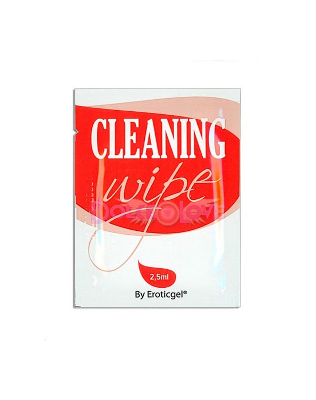 EROTICGEL CLEANING WIPE es una toallita desinfectante antibacteriana sin alcohol que limpia todos tus accesorios. Limpia todos tus juguetes eróticos higiénicamente antes y después de cada momento de juego. Mantendrás y prolongarás el tiempo de vida de tus queridos juguetes y estarán en una buena condición. Lo más importante es que de esta manera se eliminan todas las bacterias y otras contaminaciones. Se puede usar con todo tipo de materiales. Es un artículo imprescindible. Toallita monodosis de 2,5 ml.
