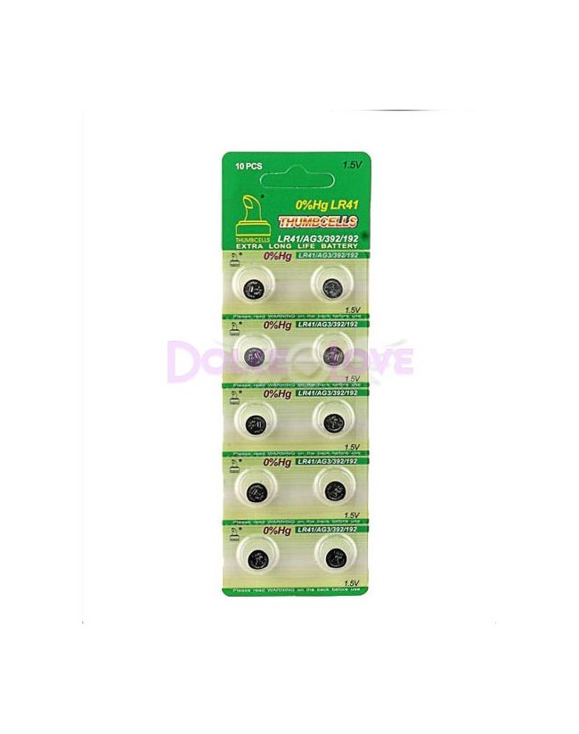 Blister con 10 pilas de boton alcalinas de 1,5V.
