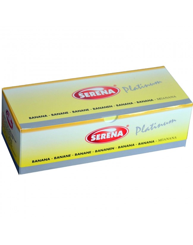 Caja de 144 unidades de preservativos Serena sabor banana.