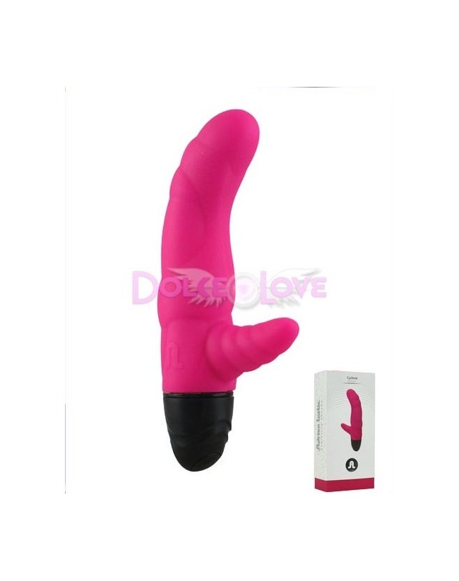 Cyclone es un vibrador de punto G de la marca Adrien Lastic, de un precioso color Fucsia, con estimulador para el punto G y estimulador del clítoris, fabricado 100% en silicona médica y libre de phalatos. Además viene con una bolsa muy elegante para poder guardalo.