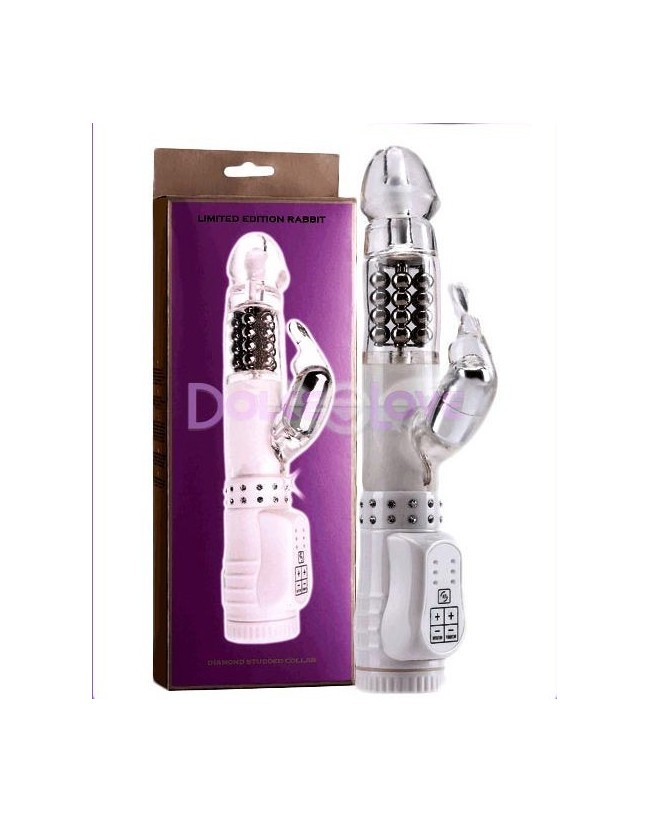 Divertido vibrador rotador que entre otras funciones permite cambiar el sentido de la rotación. Fabricado de gelatina con perlas estimuladoras (seis líneas de perlas con 4 velocidades de rotación distintas) y un conejito con unas orejas super excitantes que sirven para estimular el clítoris: el popular conejito rampante de la serie "Sexo en Nueva York".